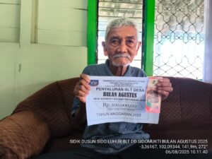” Pembagian bantuan langsung tunai pada tahap ini adalah bulan Agustus. Satu bulan dengan jumlah bantuan Rp 300.000 yang berasal daru dana desa tahun anggaran 2025.”ungkap kades”