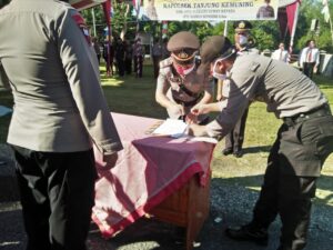 Dalam pelaksanaan Sertijab ini di pimpin langsung oleh Kapolres Kaur (AKBP Puji Prayetno. S.I.k) Dalam sambutannya menyampaikan ucapan terima kasih kepada Kapolsek lama yang mana telah menjalankan tugas dengan baik di Polsek Tanjung Kemuning ini selama lebih kurangĀ lebih 4 tahun.