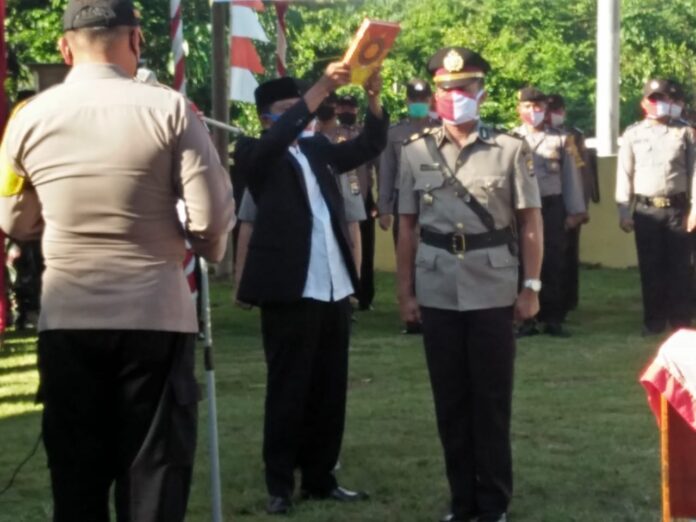 KaurĀ Pakarnews – Dalam rangka meningkatkan kenerja yang lebih baik, maka dilingkungan Polres Kaur mengadakan Mutasi. Hari ini Jumat, 3 juli 2020 telah diadakan serah terima jabatan antara Kapolsek yang lama (IPTU Pidraini Gumay) kepada Kapolsek baru ( IPTU Rabnus Supandri, S. Sos ) yang bertempat di depan Kantor Polsek Tanjung Kemuning yang di hadiri oleh Bapak Kapoles Kaur beserta anggotanya, Brimob, Koramil, anggota DPRD kaur, Camat, Tokoh Agama dan Tokoh Masyarakat.